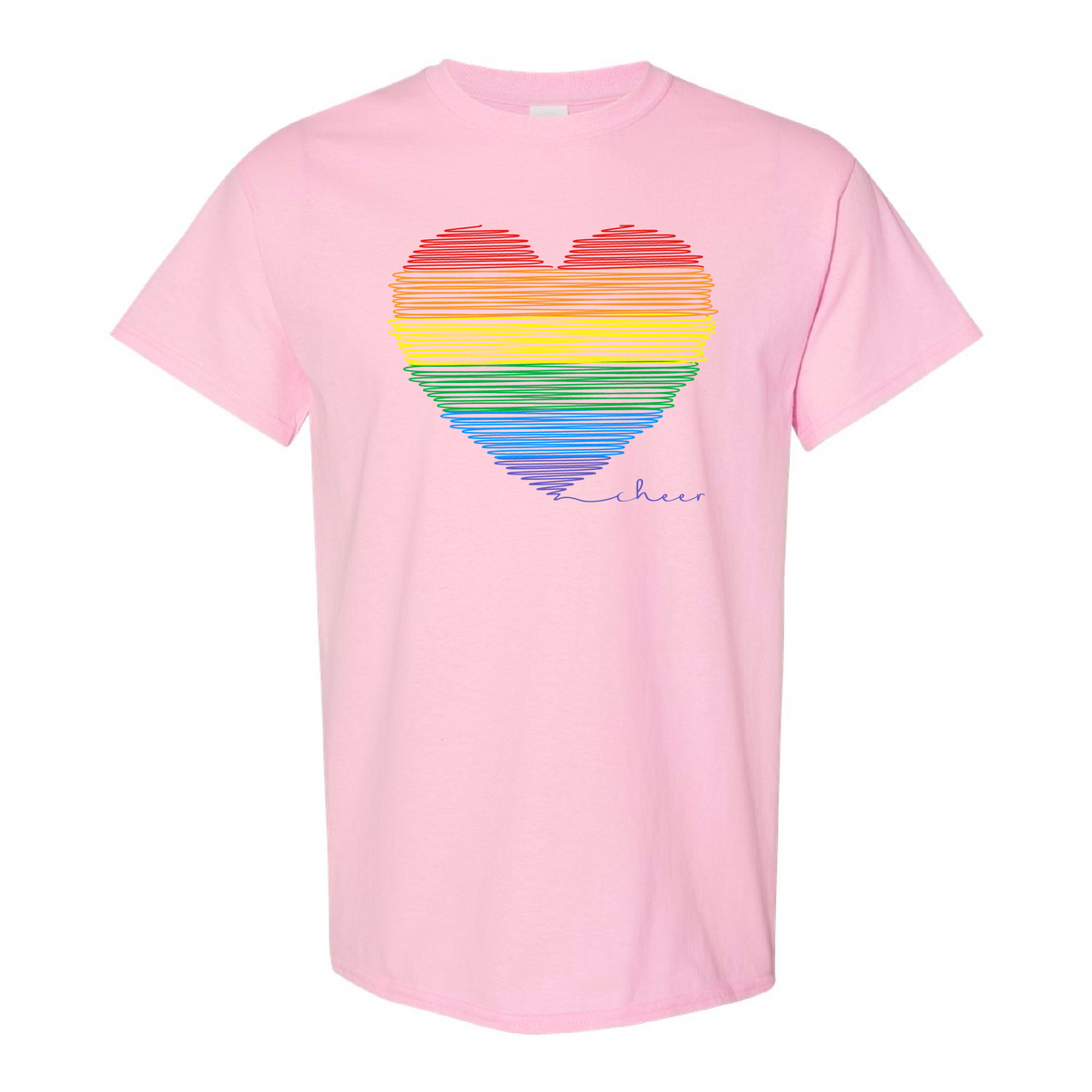 Cheerleading fills up your heart. Show your love with this cute rainbow design. Light Pink Gildan Heavy Cotton Short Sleeve T-Shirt. 5.3 oz./yd² (US) 8.8 oz./L yd (CA), 100% cotton, 20...